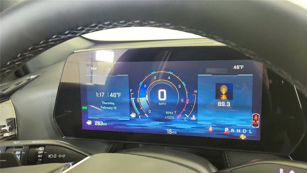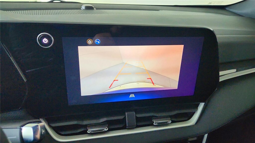 - The vehicle is equipped with a camera that displays an image of the area behind the vehicle on an interior display.